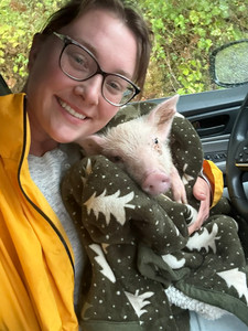 That’s when Megan Rock, a local animal lover in Mansfield, received the call. Though she isn't a rescue, Animal Control knew she had a farm and a heart for animals. Megan agreed to take the piglet in as a short-term foster to keep her safe.